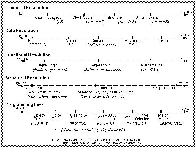 as: abstraction levels, system levels, hardware levels, software levels, structural hierarchy levels, and