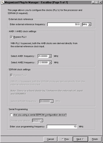 | Serial Programming | Turn off Are you using a serial EEPROM configuration device?. Make sure 10 is specified in the Enter your programming frequency box. |
